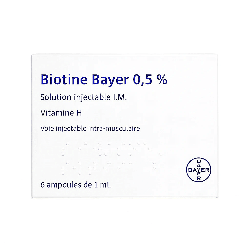- وقتی پای صحبت از مراقبت تخصصی از سلامت پوست و مو در میان باشد، پای شرکت داروسازی Bayer آلمان نیز در میان است. ویال تزریقی ویتامین H یا همان به اصطلاح “بیوتین” Biotine 0.5% یک مکمل تقویت کننده و ضدریزش مو غنی شده با پرو ویتامین اچ می باشد که برای تمامی گروه های سنی بزرگسال آقایان و بانوان قابل استفاده است.
