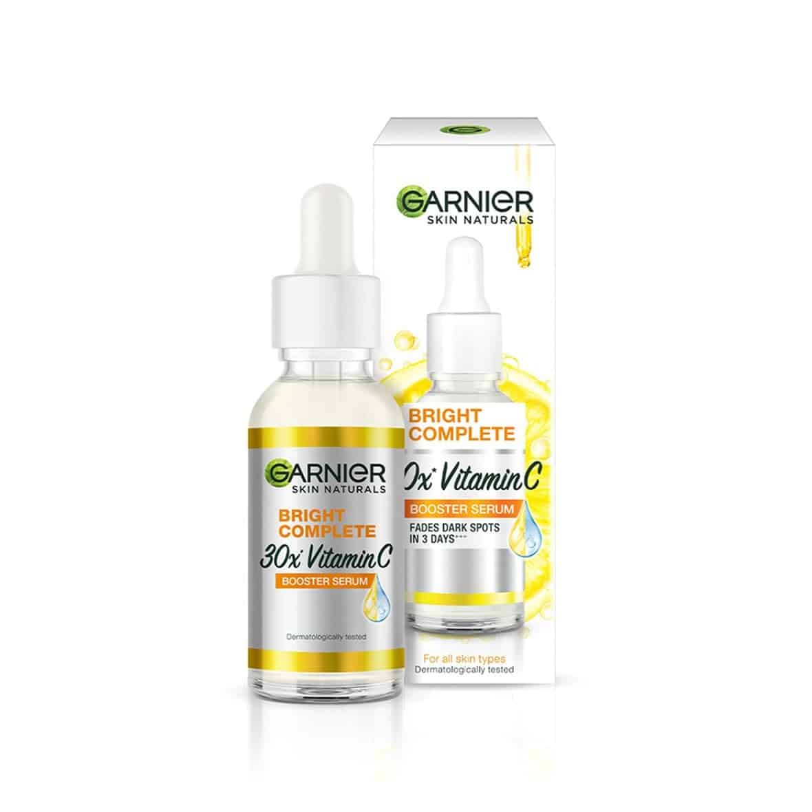 - سرم ویتامین سی برایت کامپلت برند گارنیر Bright Complete Vitamin C Booster حاوی ویتامین سی با 30 برابر غلظت و تاثیرگذاری بالاتر به نسبت دیگر محصولات ویتامین سی گارنیر است و استفاده روزمره از آن باعث محو کامل لکه های تیره و قرمزی های پوستی می شود.