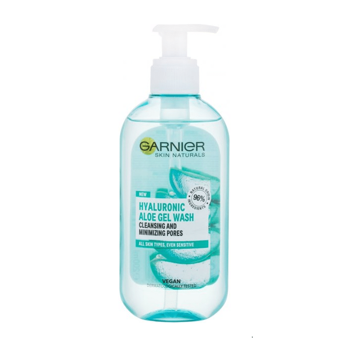 - ژل شستشو صورت حاوی عصاره آلوئه ورا و هیالورونیک اسید Hyaluronic Aloe Cleanse گارنیر، آلودگی و کثیفی های سطح پوست را پاکسازی می کند، چربی پوست را کنترل می کند و با حفظ رطوبت، شادابی پوست را حفظ می کند و مانع از خشک شدن پوست می شود.