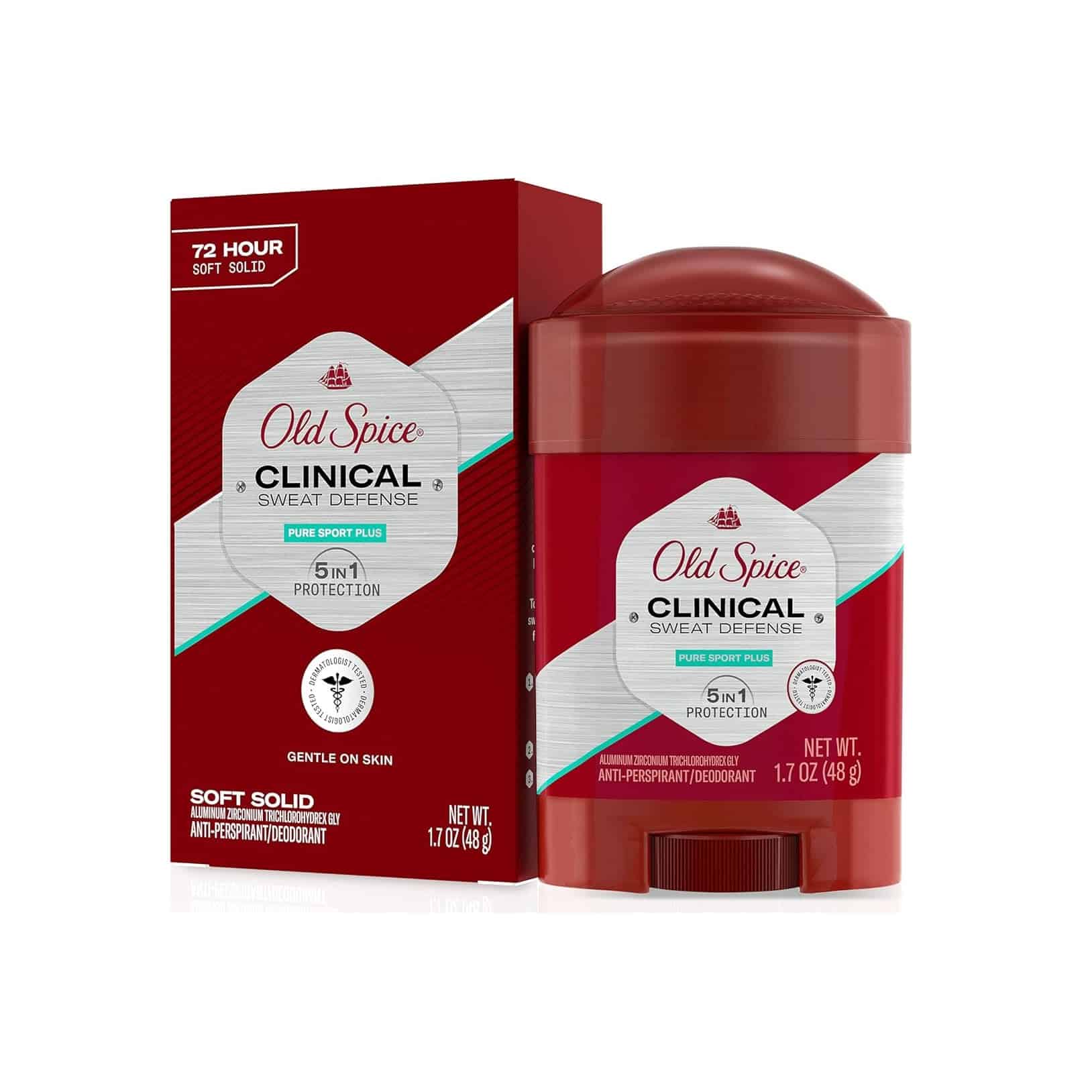 - کرم ضدتعریق پیور اسپرت کلینیکال استرنج الداسپایس Old Spice Clinical Strength Pure Sport Plus Antiperspirant از بالاترین حد مجاز نمک آلومینیوم تایید شده توسط پزشکان متخصص پوست بهره می برد و مناسب آن دسته آقایانی است که از استفاده از هیچ مام دئودورانت یا آنتی پرسپیرانت با شدت تاثیرگذاری ملایم تر نتیجه نگرفته اند؛ افرادی که تعریق بسیار بالایی داشته و از تغییر رنگ تعریق و اثر بجا مانده از تعرق بر روی لباس خود رنج می برند. مام کلینیکال الداسپایس بصورت کامل تعریق بدن را قطع کرده و به مدت زمان 72 ساعت از پوست شما محافظت می کند.