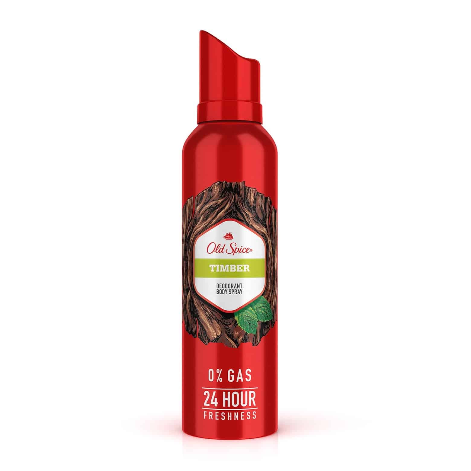 • اسپری دئودورانت فاقد گاز تیمبر الداسپایس Old Spice 0% Gas Timber Deodorant Body Spray رایحه بسیار فریبنده ای دارد. عطر تیمبر الداسپایس ترکیبی از بوی چوب و خامه و تونکاست؛ یادآور بوی یک کشتی تجاری بادبانی چوبی حامل ادویه های شرقی ست که در یک غروب پاییزی در لنگرگاهی پهلو گرفته است. این محصول رایحه ای گرم و معتدل دارد و در تمام طول روز از ایجاد بوی بد تعریق جلوگیری می کند. تیمبر یک افشانه دئودورانت 140 گرمی فاقد گاز است که دقیقا 140 گرم دئودورانت داشته و مانند دیگر اسپری های ضد تعریق و دئودورانت با هوا پر نشده است.