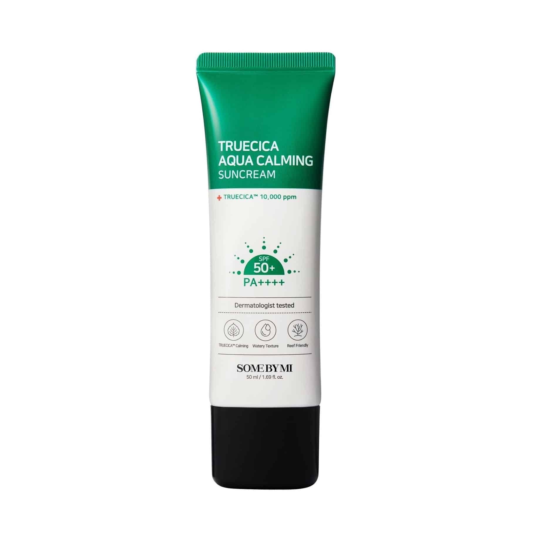 - ضدآفتاب تروسیکا آکوا Truecica Aqua برند سام بای می یک ضدآفتاب فلوییدی Ultra-lightweight یا فوق سبک است که توسط 10 هزار PPM ترکیبات گیاهی ترمیم کننده و ضدالتهاب، از قبیل روغن درخت چای، ماگورت، سنتلا آسیاتیکا و آلوئه ورا تقویت شده است و یکی از بهترین انتخاب ها برای افرادیست که پوستی چرب و مستعد جوش دارند. این محصول دارای عدد SPF50 و درجه PA++++ می باشد و تا 16 ساعت از پوست در برابر بروز لک و آفتاب سوختگی محافظت می کند. علاوه بر آن، بافت سبکی دارد، بی رنگ بوده، رد سفید برجای نمی گذارد و به خوبی جذب پوست می شود.