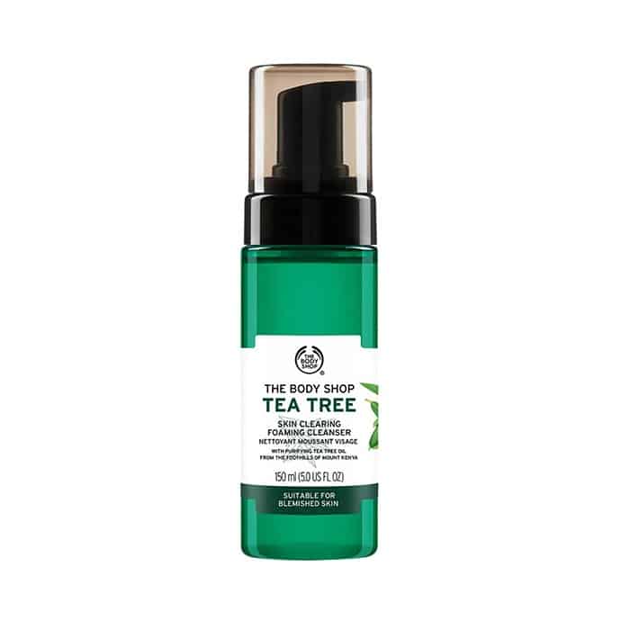 - فوم شستشوی صورت Tea Tree Cleanser بادی شاپ، حاوی عصاره روغن درخت چای می باشد و دارای قدرت پاک کنندگی بالای منافذ پوست است، خاصیت آنتی باکتریالی دارد و چربی اضافی، التهاب و قرمزی پوست را از بین می برد، جوش های صورت را بهبود می بخشد و از رشد جوش های جدید به خوبی جلوگیری می کند.