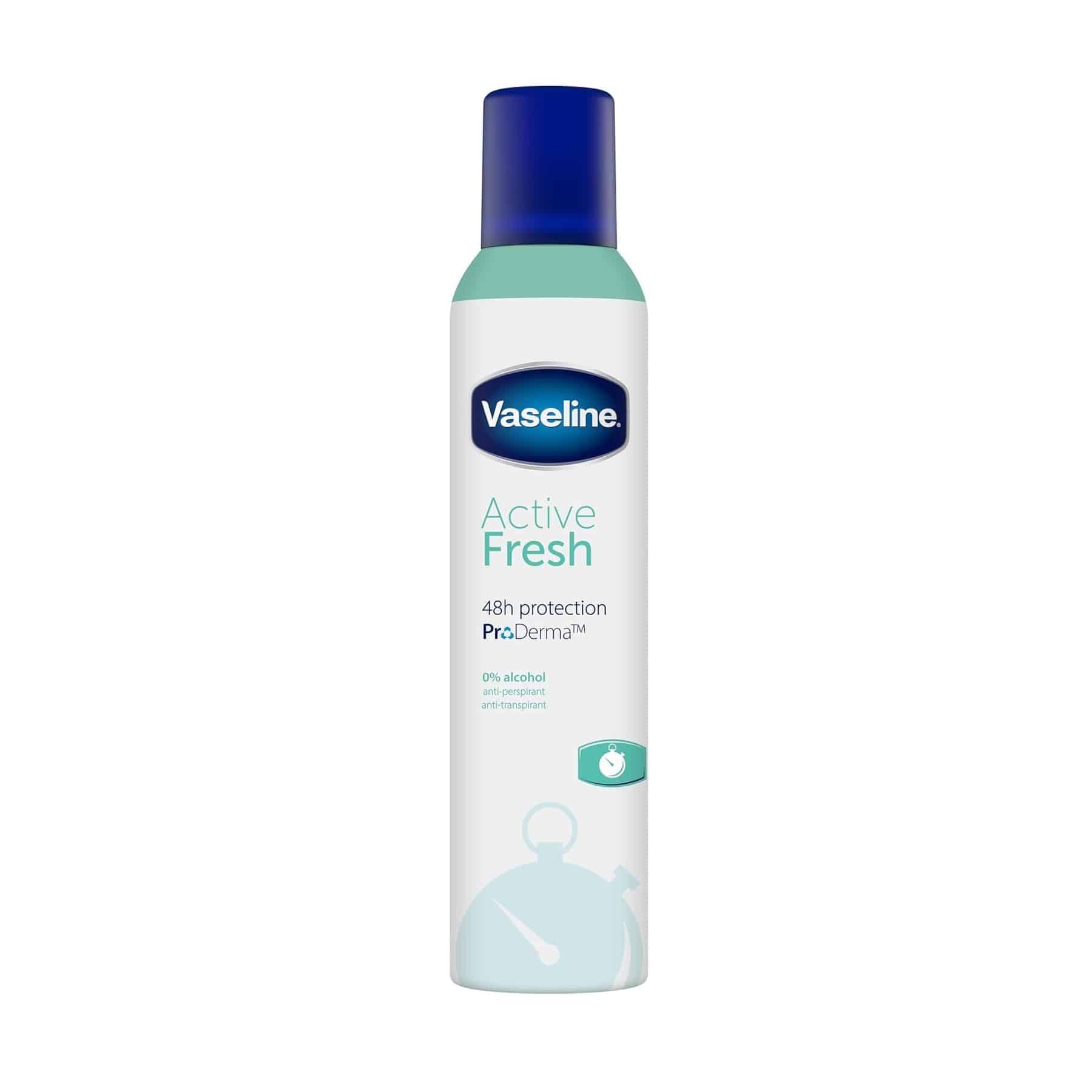 - اسپری آنتی پرسپیرانت اکتیو فرش وازلین یک اسپری ضدتعریق ویژه بانوان است که رایحه ای ماندگار و خنک دارد و تا 48 ساعت از بروز تعریق و ایجاد رایحه نامطبوع در ناحیه زیربغل جلوگیری می کند. اسپری ضدتعریق Proderma Active Fresh وازلین فاقد الکل و ترکیبات حساسیت زا بوده و برای انواع مدل های پوستی و گروه های سنی قابل استفاده است.
