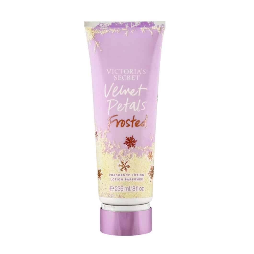 - رایحه Velvet Petals Frosted یکی از زیر مجموعه های رایحه محبوب و پرطرفدار ولوت پتالز ویکریا سکرت است. این لوسیون بدن نوت بو اولیه شکوفه گل های قطبی داشته و مطبوع، گلی و خنک است؛ اما در نوت دوم با رایحه انگور سیاه و چوب صندل معروف ولوت پتالز همراه می شود و با رایحه مخمل تازه خاتمه پیدا می کند. این لوسیون بدن مرطوب کننده محافظت 24 ساعته داشته و ماندگاری رایحه 6 تا 8 ساعت در طول تابستان و 12 ساعت در طول زمستان دارا می باشد.